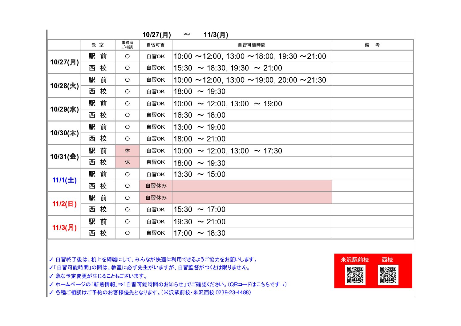 米沢駅西口から徒歩1分、駅前交番向かいの緑色の建物です。 屋内は、マンツーマン指導用の教室と自習スペースを備えております。自習スペースは、会員の生徒さんは無料で開放しており、自由に使うことができます。放課後の学習時間確保やテスト勉強に最適です。