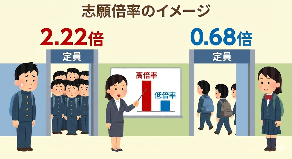 2月24日、2026年度(令和8年度)山形県公立高校入試における後期(一般)選抜の志願倍率が発表されました。Yahoo!ニュースなど各メディアの報道でも触れられている通り、全日制公立合計の志願倍率は0.68倍となりました。県…