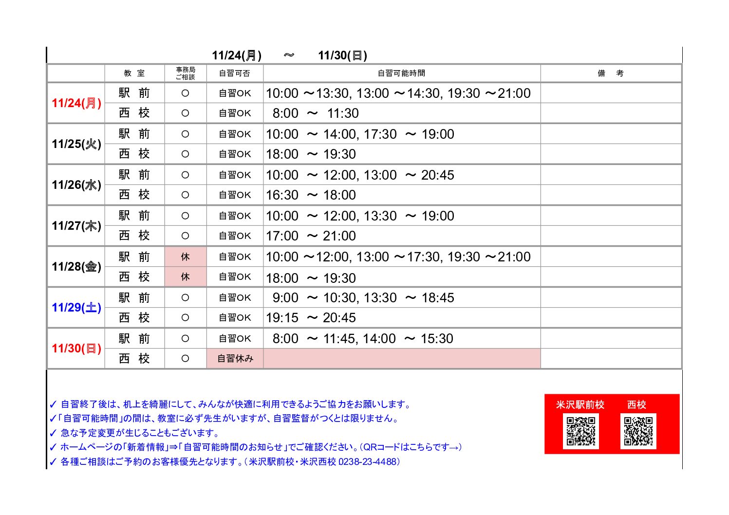 お知らせ TOP お知らせ/新着情報 【米沢駅前・西校】自習可能時間のお知らせ(11/24~11/30) 2025.11.24 【米沢駅前・西校】自習可能時間のお知らせ(11/24~11/30) 「新着情報」一覧へ戻る 2025.11.29 【酒田】自習可能時間のお知らせ(12/1~12/7) NEW 2025.11.24 【米沢駅前・西校】自習可能時間のお知らせ(11/24~11/30) NEW 2025.11.17 【米沢駅前・西校】自習可能時間のお知らせ(11/17~11/24) NEW 資料請求 無料教育相談お申込み 各事務局の最新情報をcheck! ▶山形事務局 ▶米沢事務局 ▶長井事務局 ▶鶴岡事務局 ▶新庄事務局 ▶東根事務局 ▶天童事務局 ▶寒河江事務局 ▶酒田事務局