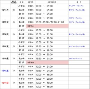 【酒田】自習可能時間のお知らせ(12/1~12/7)